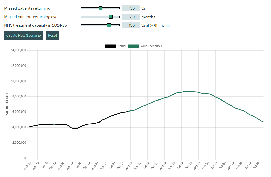 A tool that allows people to explore how NHS waiting lists in England could change under different assumptions.